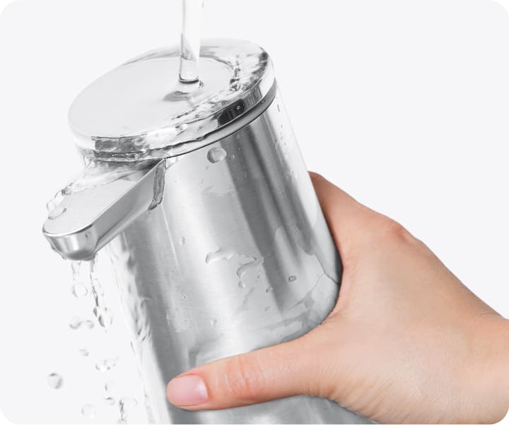 Unsere Sensorspender gibt eine unterschiedliche Menge an Seife ab, je nachdem, wie weit Sie Ihre Hand entfernt halten. Nah für wenig - Weit für viel.