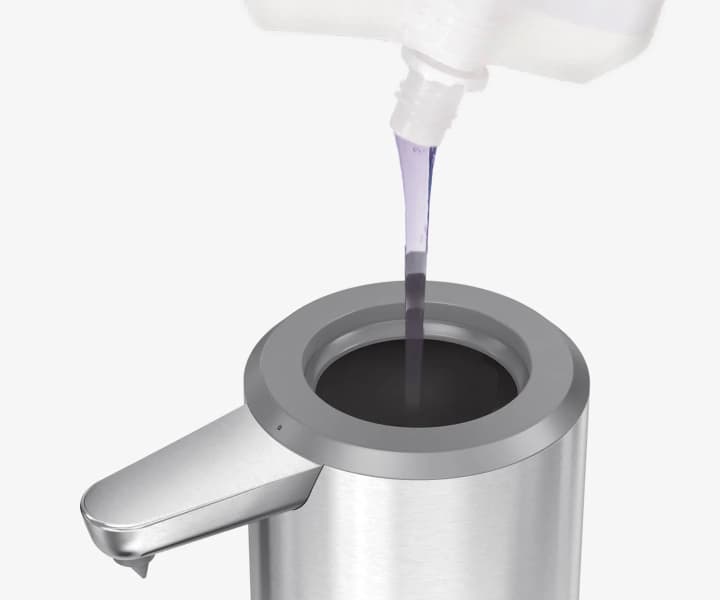 Unsere Sensorspender gibt eine unterschiedliche Menge an Seife ab, je nachdem, wie weit Sie Ihre Hand entfernt halten. Nah für wenig - Weit für viel.