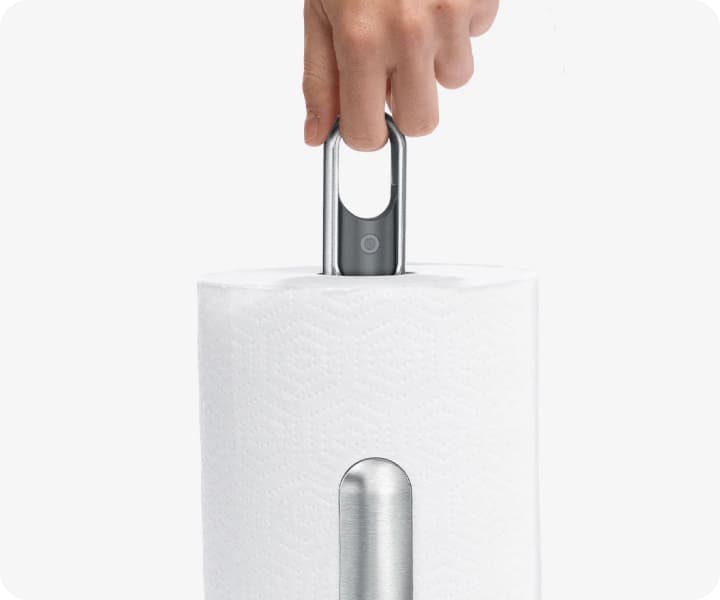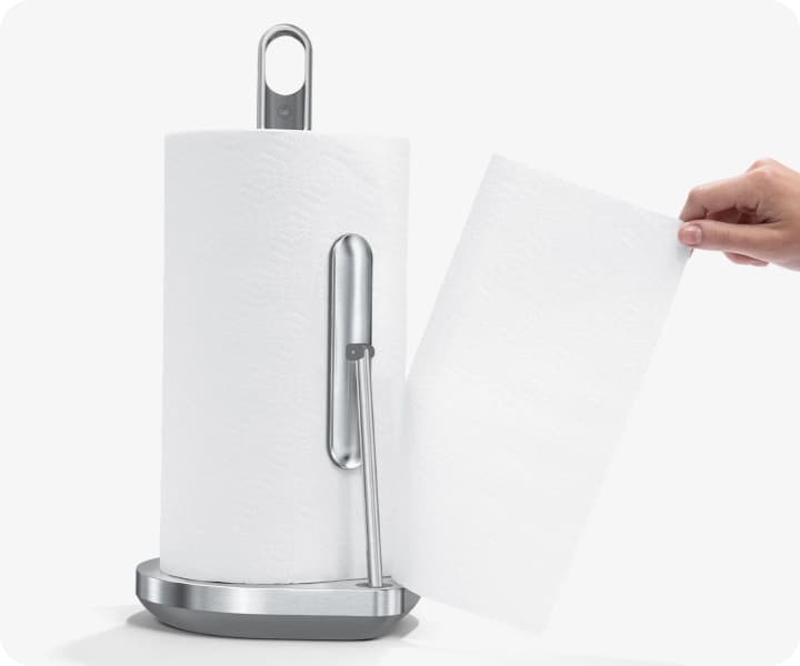 Kleckern, Verschütten, Fett, Keime — das Leben ist schmutzig. Kein Problem! Dieser Küchenrollenhalter verfügt über einen integrierten Pumpspender — einfach sprühen und abwischen.