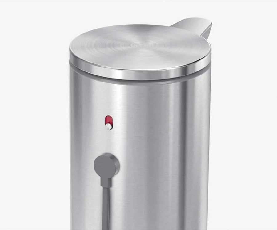 Ein Ein/Aus-Schalter erleichtert die Reinigung ohne unerwartete Ausgabe an Seife. Der Ladeanschluss auf der Rückseite ist leicht zugänglich und eine Ladung hält 4 Monate.