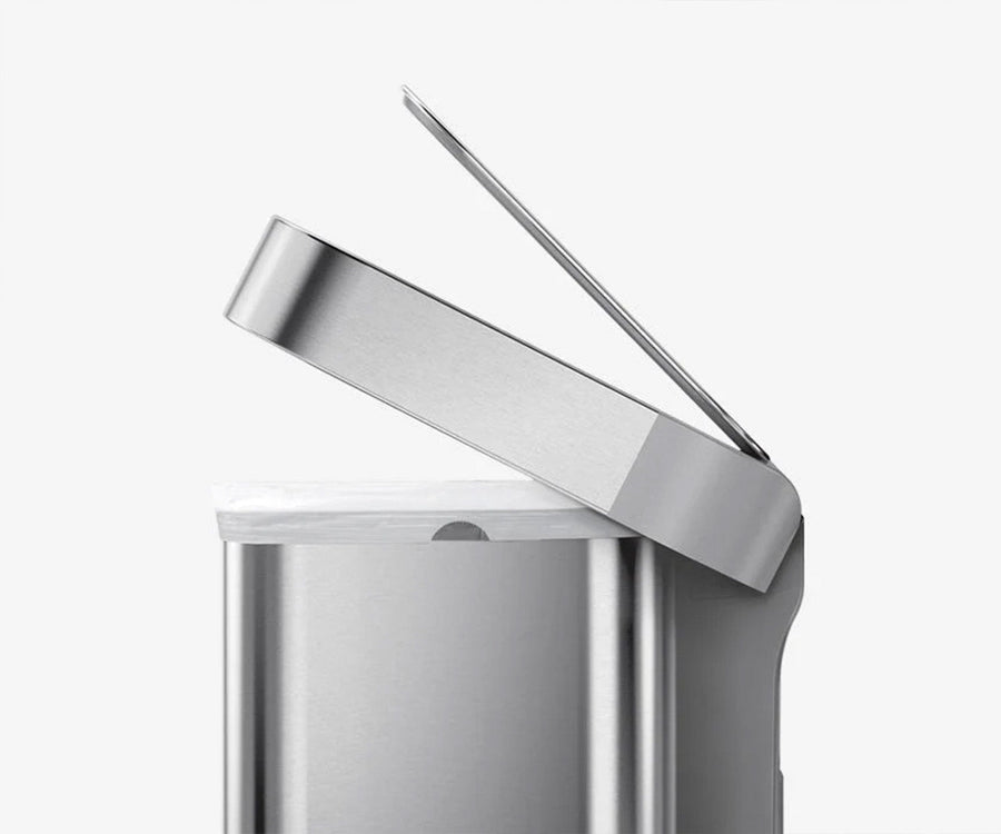Unser einzigartiges Beutel-Klemmrand-System ist ein schnellerer, ordentlicherer Weg, aufzuräumen! Der äußere Deckel lässt sich für den einfachen Zugang zum Müllbeutel hochheben — Sie müssen den Deckel des Abfalleimers nicht entfernen oder mit einem Eimer hantieren. Wenn Sie fertig sind, schließt er über dem Müllbeutel und hält ihn verborgen.
