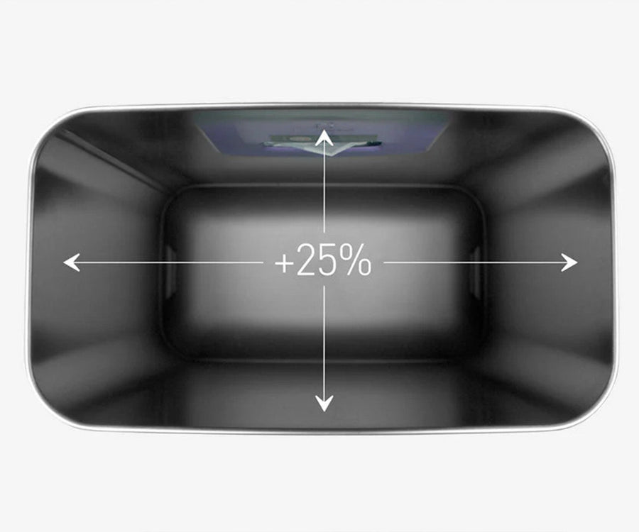 Der Beutel-Klemmrand hält den Müllbeutel an seinem Platz, so dass ein Inneneimer nicht mehr benötigt wird. Altmodische Eimer sind sperrig, unhandlich und eine große Platzverschwendung im Abfalleimer - jetzt gibt es 25 % mehr Platz für Abfälle! Der Innenraum wurde mit abgerundeten Ecken und glatten, abwischbaren Oberflächen für eine einfache Reinigung entworfen.