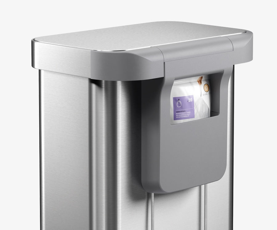Our liner rim system makes trash faster and neater. Simply lift the lid for easy access, then close it to keep the liner tidy and out of sight.