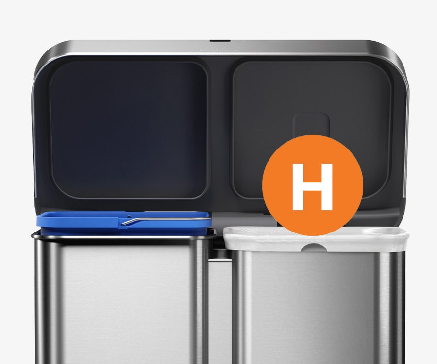 Our liner rim system makes trash faster and neater. Simply lift the lid for easy access, then close it to keep the liner tidy and out of sight.