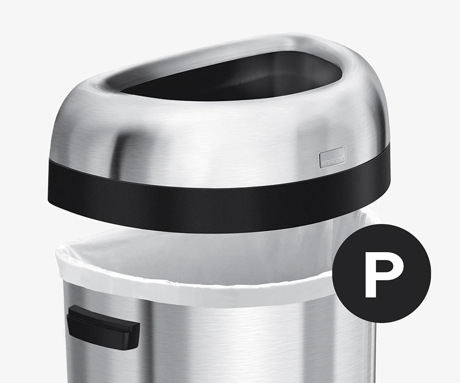 Unsere maßgefertigten Code P Müllbeutel passen perfekt zu diesem Abfalleimer, sodass es keine Knäuel, kein Verrutschen und keinen unordentlichen Beutelüberhang gibt, für ein sauberes, aufgeräumtes Aussehen. Außerdem sind sie extra dick und doppelt vernäht, damit man den Müll bis zum Rand füllen kann, ohne reißen und auslaufen.