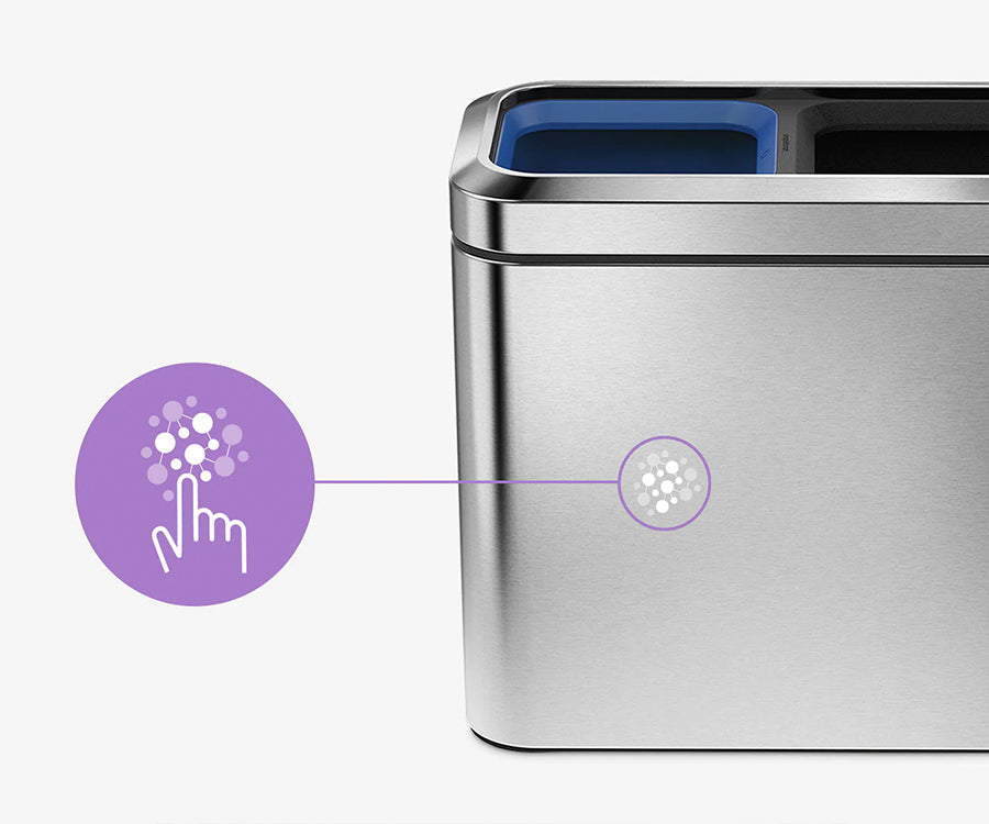 Unsere unsichtbare Silberionenbeschichtung schützt vor Fingerabdrücken und der Verbreitung von Keimen, ohne den natürlichen Glanz des Stahls zu beeinträchtigen (nur gebürstetes Modell).