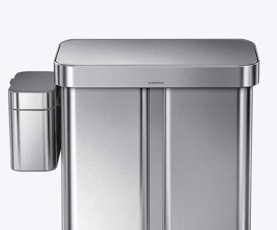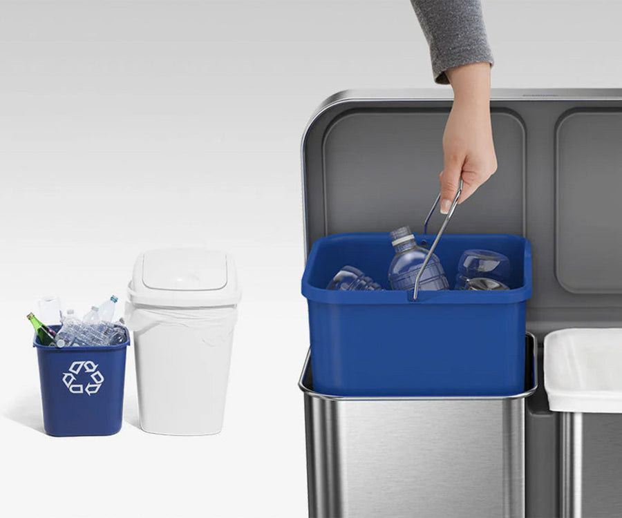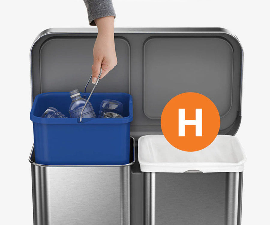 Unsere Doppeleimer-Option macht Mülltrennung attraktiv! Jede Seite hat ein großzügiges Volumen und das Entleeren ist durch einen Plastikeimer auf der Recycling-Seite und einem Müllbeutel im Abfallfach einfach.