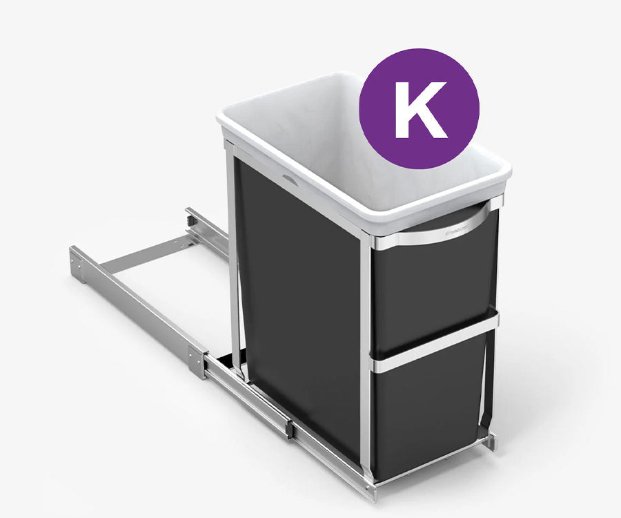 Unser ausziehbarer Abfalleimer wurde für jahrelangen Gebrauch entworfen. Dieser Abfalleimer hat einen robusten Stahlrahmen und gleitet auf reibungslosen, robusten Kugellagerschienen für schnellen und einfachen Zugriff aus dem Schrank.